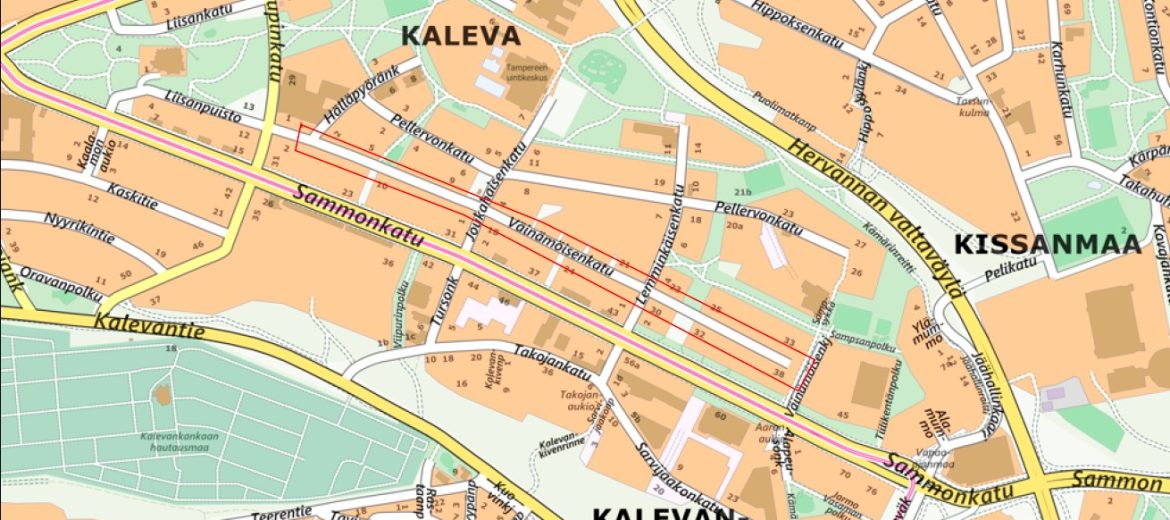 Väinämöisenkadun vesihuollon saneeraus tehdään talven ja kevään 2025 aikana. Kadulle rakennetaan osittain hulevesiviemäröintiä, uusitaan vesijohto ja rakennekerrokset tarvittavilta osin sekä päällystetään ja viimeistellään kadun saneeratut osuudet kesällä 2025.