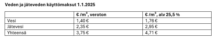 Vesi- ja jätevesimaksut nousevat 1.1.2025 alkaen